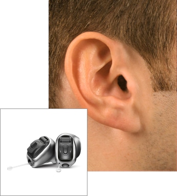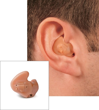 This hearing aid is placed in the ear canal and is the smallest available. It takes advantage of the ear’s natural ability to collect sound, and its discreet size makes the device virtually invisible to others.
